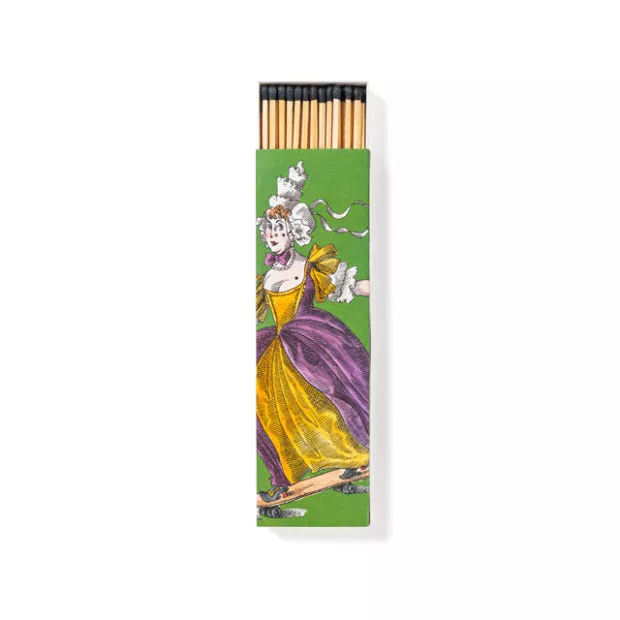 L'allumette, chez Trudon, est un incontournable du rituel de la bougie. En un crac, elle enflamme la mèche, surprend les ombres, fait éclater la lumière. Parfumée avec délicatesse, elle signe le prologue des histoires olfactives de chaque bougie. Élégante, longue et gracile, endormie dans sa boîte illustrée, elle attend patiemment que sa destinée se réalise. Et si son écrin reste légèrement ouvert, elle embaumera même dans son sommeil un tiroir, une armoire, un bureau.