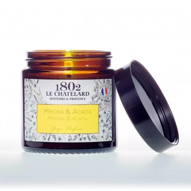 Découvrez tout le potentiel olfactif d'une bougie parfumée Mimosa et Acacia dans votre intérieur. Vous profiterez des effluves fleuries et boisées du mimosa et de l'acacia, dans une bougie fabriquée dans leurs ateliers drômois, pour refléter l'identité et l'ancrage provençal.