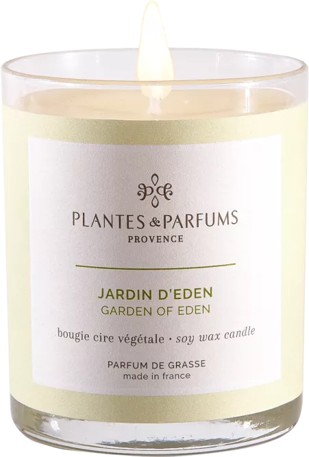 La Bougie Végétale Parfumée Jardin d’Eden délivre des notes d’Agrumes et de Fleurs Blanches où se mêlent la gourmandise de la Vanille et de l’Ambre pour offrir un parfum délicat et envoûtant.