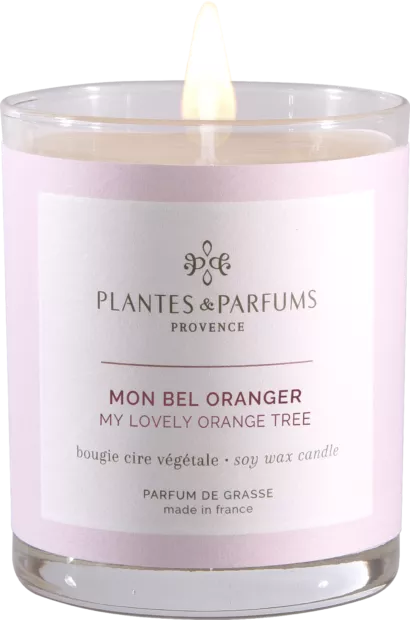 La Bougie Végétale Parfumée Mon Bel Oranger délivre des notes vives et langoureuses de Fleur d’Oranger et d’Agrumes.