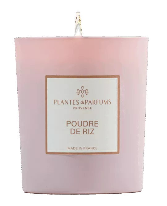 La Bougie Végétale Parfumée Poudre de Riz, en cire de soja 100 % végétale, est fabriquée dans notre Manufacture en Provence.