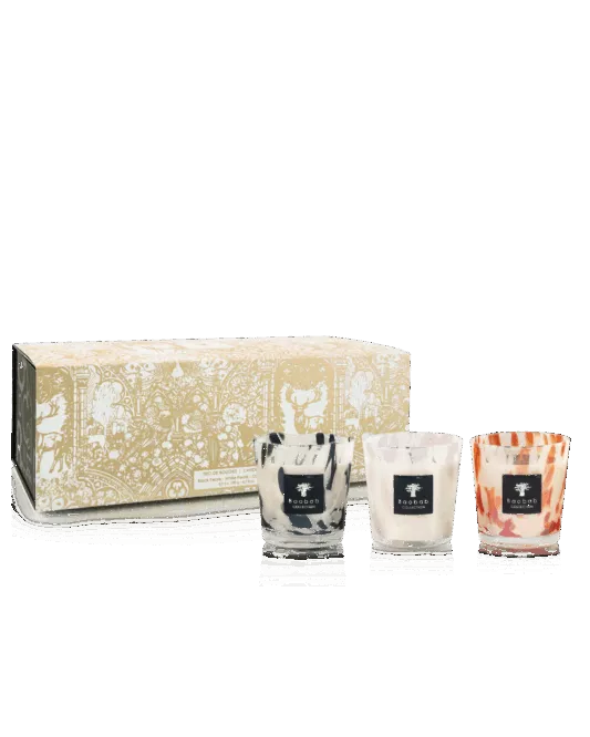 Déclinées en petit format Max 08, les bougies iconiques de notre collection Pearls se rassemblent cet hiver dans un coffret cadeau. Black Pearls, White Pearls et Coral Pearls forment un trio coloré de verres soufflés, unique et précieux. Leurs parfums sont complémentaires et offrent une expérience olfactive unique.