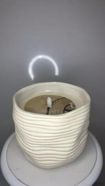 Le design du récipient en céramique blanche, avec ses lignes douces et ondulantes, rappelle le mouvement de l'eau, le murmure du vent et le magnétisme des dunes. Invitant à un équilibre calme et organique.