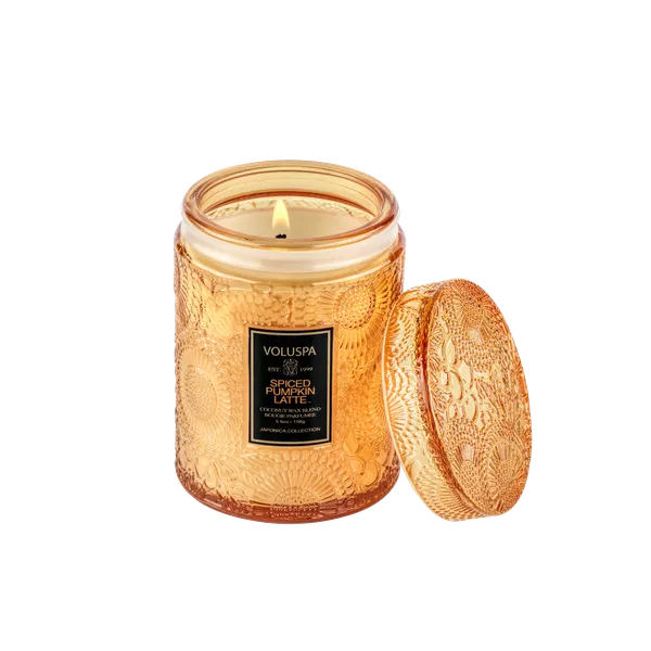 Invitez la saison d'automne avec la collection Spiced Pumpkin Latte de Voluspa. Comme si vous vous détendiez avec votre boisson préférée, cette collection évoque un parfum familier mais raffiné.