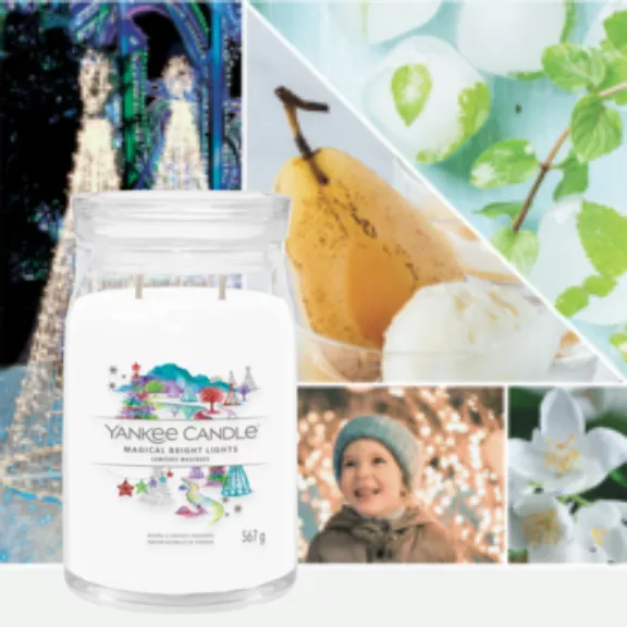 La nuit s’illumine de petites Lumières Scintillantes et colorées tandis que les arômes de la poire glacée, de la feuille de menthe, du jasmin et de la vanille vous plongent dans un univers enchanteur.