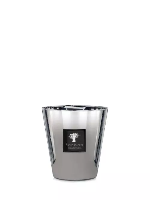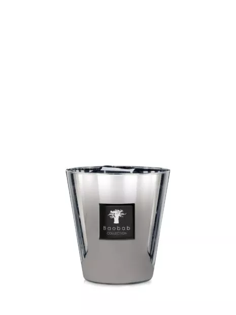La bougie parfumée Platinum se relook en petite taille pour une version au monogramme platine, très identitaire de notre marque.