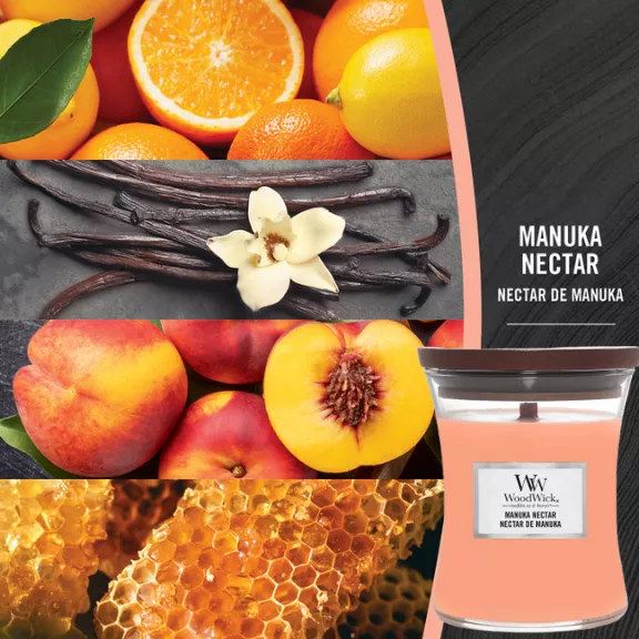 Un parfum nuancé et fruité évoquant des notes de pêche fraîche, de miel, de vanille chaude et de fleurs douces.