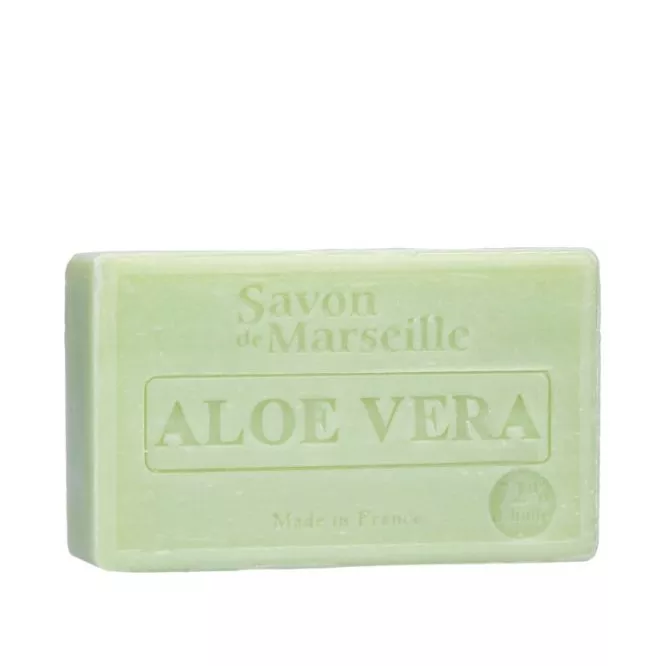Le savon Aloé Véra contient de la glycérine végétale et est enrichi en huile d'amande douce sources de douceur et d'hydratation.