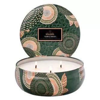 Voluspa vous invite à chercher du réconfort dans le sol de la forêt. Laissez-vous bercer par les notes bienfaisantes de la mousse fraîche, des feuilles humides, des pierres mouillées et du soleil chaud qui perce à travers le bosquet de branches d'Hinoki. Le maître parfumeur en personne, Mère Nature, vous guidera vers la tranquillité à travers les images, les sons et les parfums rythmés de sa forêt luxuriante. Tout le monde est invité à se promener sur les terres aromatiques de Temple Moss.