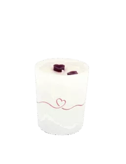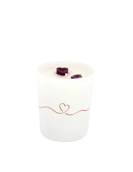 Le parfum pluie de pétales évoque la poésie et la douceur d'une composition florale raffinée, d'une note d'agrumes fraîche et enveloppante. La douceur est apportée jusque dans les moindres détails grâce aux deux petits cœurs rouges qui ornent sur le dessus de la bougie.