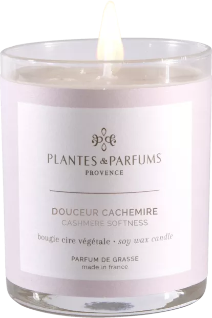 La Bougie Végétale Parfumée Douceur Cachemire délivre une fragrance aux notes poudrées et au sillage élégant pour s’envelopper de douceur.