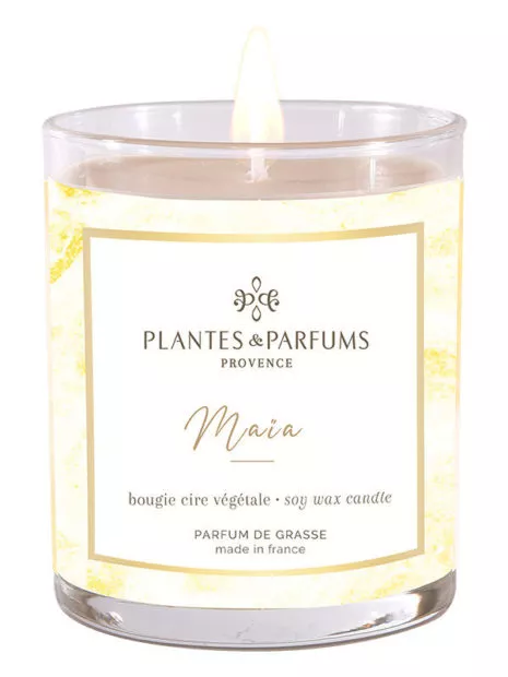 La Bougie Végétale Parfumée Maïa délivre un parfum pur et infiniment mystérieux pour les longues nuits étoilées d’hiver.