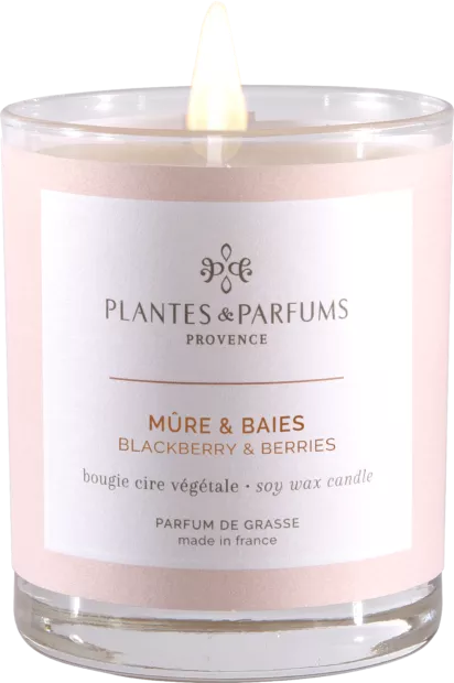 La Bougie Végétale Parfumée Mûre & Baies vous plonge dans un délicieux panier de Baies où la Mûre se mêle aux notes fraîches du Citron, de la Bergamote et du Musc.