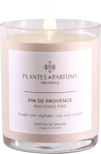 La Bougie Végétale Parfumée Pin de Provence délivre des notes vives et aromatiques de conifères. Son parfum de Bois et d’Epines se mêle à des notes douces et vertes.