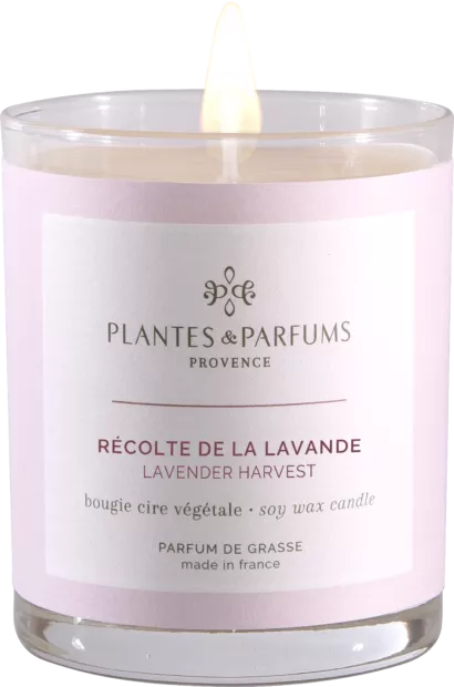 La Bougie Végétale Parfumée Récolte de la Lavande délivre un parfum doux et délicat. Cette fragrance vous plonge dans un bouquet aromatique de Fleurs de Lavande fraîchement coupées.