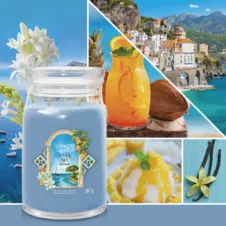 Laissez les vagues s'écraser sur vos pieds pendant que vous vous promenez le long de la côte italienne ensoleillée. Des notes marines de marée mêlées à de la mangue fraîche, de la crème de noix de coco sucrée et de la tubéreuse solaire.Les bougies sont fabriquées à base d'un mélange de cire de soja. Leurs mèches sont en fibres 100% naturelles et leur design en verre épuré et élégant s'adapte à tous les styles d'intérieur. Les bougies parfumées Yankee Candle sont idéales pour parfumer les grands comme les petits espaces. Elles possèdent plusieurs mèches afin de faciliter la diffusion du parfum dans tout l'espace.
