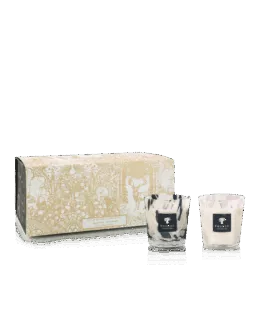 Les bougies iconiques Black Pearls et White Pearls sont éditées en petit format Max 08 et se placent dans un coffret précieux, recouvert d’un emballage doré et blanc. Un merveilleux cadeau à offrir ou à s’offrir, afin de redécouvrir les plus grands succès olfactifs de notre marque.