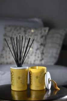 Ambre est une invitation au voyage, un parcours vers l’Orient. Son design, son parfum font écho à la puissance du soleil, à la chaleur.