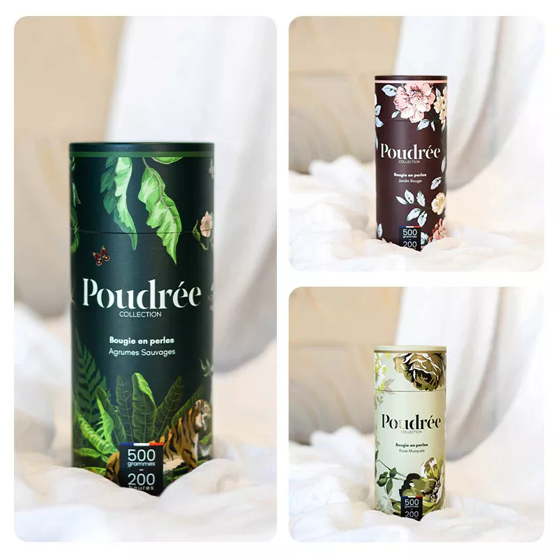 Parfum : Agrumes Sauvages, Fleur Ambrée, Iris Blanc, Jardin Rouge, Rose Musquée, Santal Divin