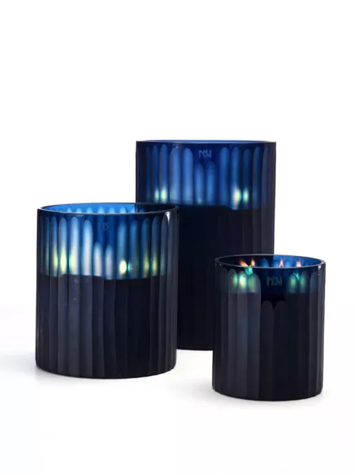 Inspiré de la vraie vie, celle que nous chérissons tant, un modèle classiquement royal et pourtant tellement contemporain. Une lente progression vers les hauteurs et une ultime étape, le développement d'un cercle sans fin. Cette série est disponible en coloris bleu royal. Les nuances bleu, créées lors de brûlage, reflètent la lumière nordique ô combien magique. Une lumière tout simplement chaleureuse et exceptionnelle.