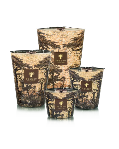 La bougie parfumée Mankono porte le nom de la région du nord de la Côte d’Ivoire où nous poursuivons nos actions sociales et écologiques. Son verre est habillé d’un imprimé exclusif, dessiné par les artistes d’Uniwax – maison emblématique d’impression de textiles africains – qui se place harmonieusement sur le verre, tout en prenant vie sous la flamme grâce à l’expertise de la sublimation. Les tons bruns et jaunes safran du dessin sur le verre sont en accord parfait avec son parfum boisé et épicé. La bougie devient un objet décoratif ethnique, suivant dans son allure l’ADN de notre marque.