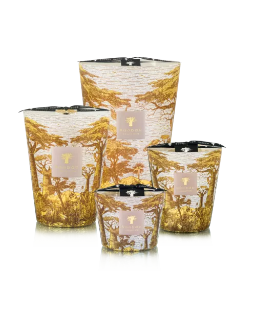 Inspirée par les terres vibrantes de la région de Bounkani, en Côte d’Ivoire, la bougie parfumée Bounkani incarne l’âme d’un territoire riche en traditions et en contrastes. Le décor, qui rend hommage aux majestueux baobabs, a été dessiné par les artistes de la société Uniwax, à Abidjan, avec laquelle nous collaborons depuis la création de notre partenariat sociétal et environnemental avec la Fondation Cœur Vert.