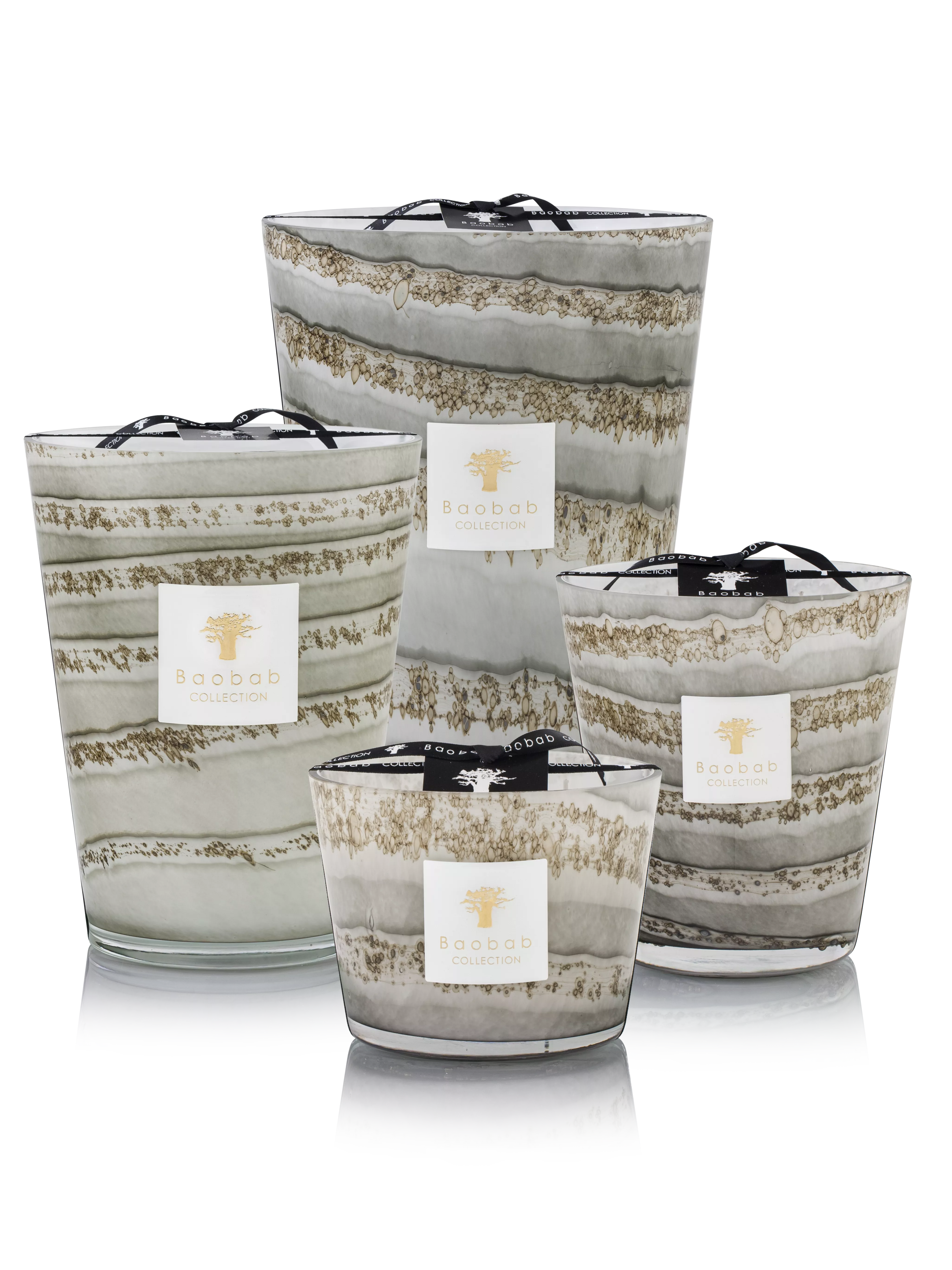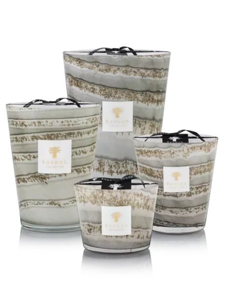 Un verre soufflé à la main avec des nuances de gris subtiles a été fabriqué par nos artisans verriers. Les strates horizontales forment des rayures grises parsemées de petits éclats ronds et organiques. La bougie parfumée Atacama apporte l'élégance minérale a vos intérieurs contemporains.