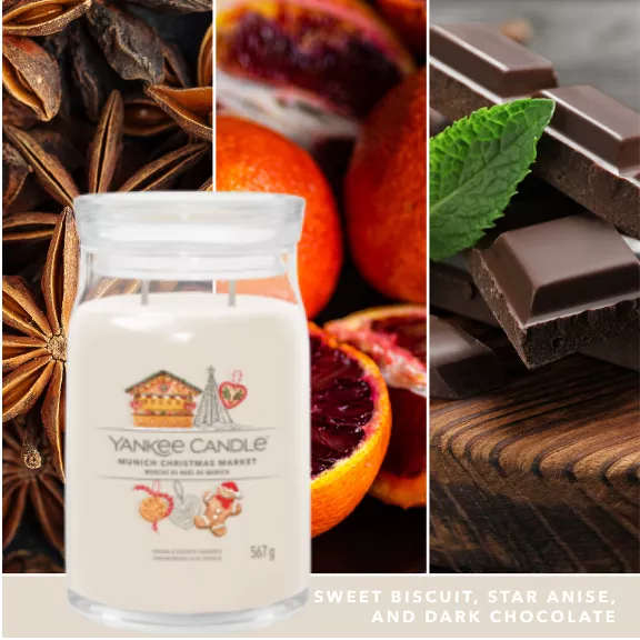 Visitez un marché de Noël animé à Munich et laissez-vous tenter par le parfum des biscuits sucrés aux notes évoquant l'orange, l'anis étoilé et le chocolat noir.