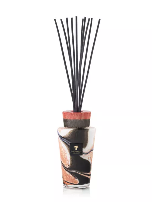 Les totems Zambèze de la collection Delta sont de grands flacons rechargeables en verre soufflé bouche corail et noir. Chaque verre est unique comme par magie sous le souffle de l’artisan. Son parfum floral et gourmand s’inscrit comme une identité olfactive à la personnalité bien affirmée.